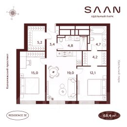 Общая площадь68,4 м²