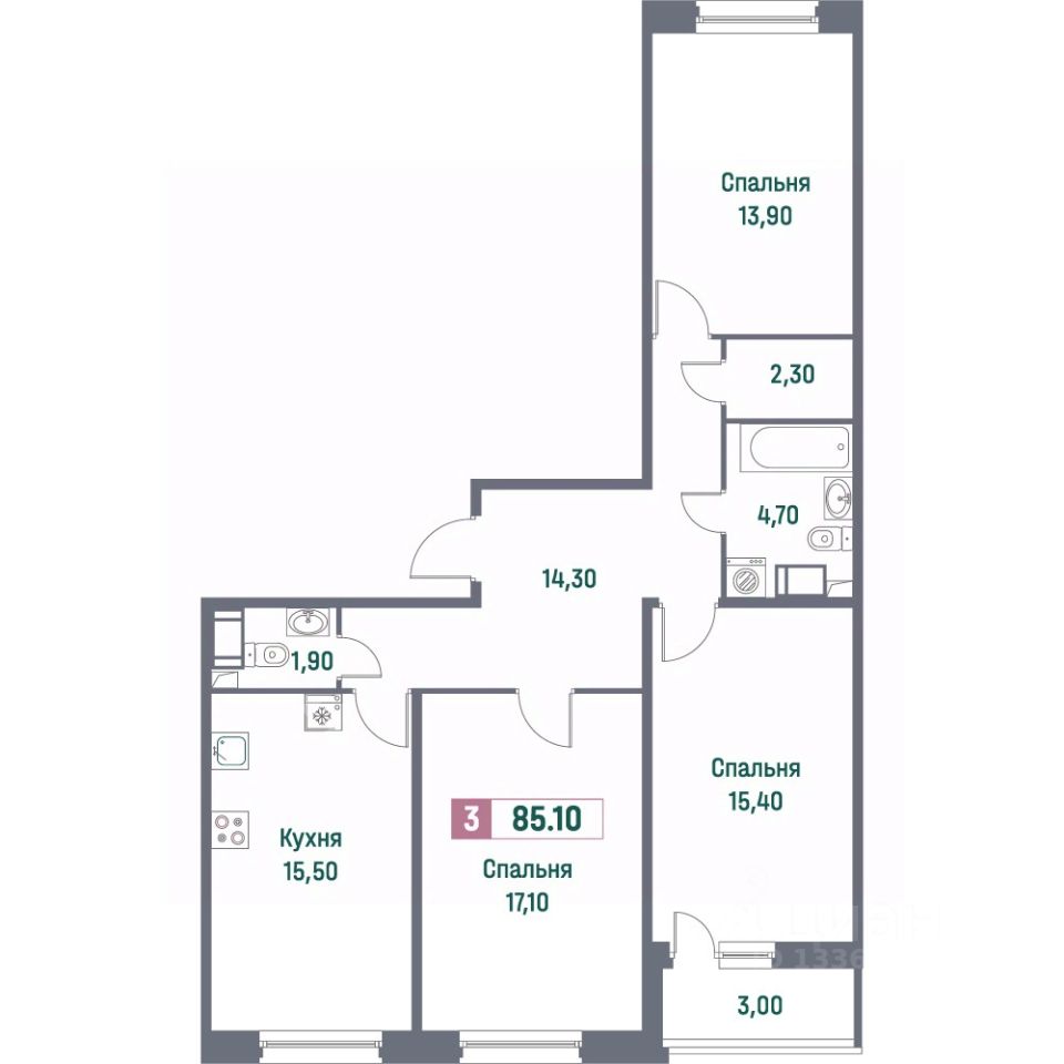 Общая площадь85,1 м²