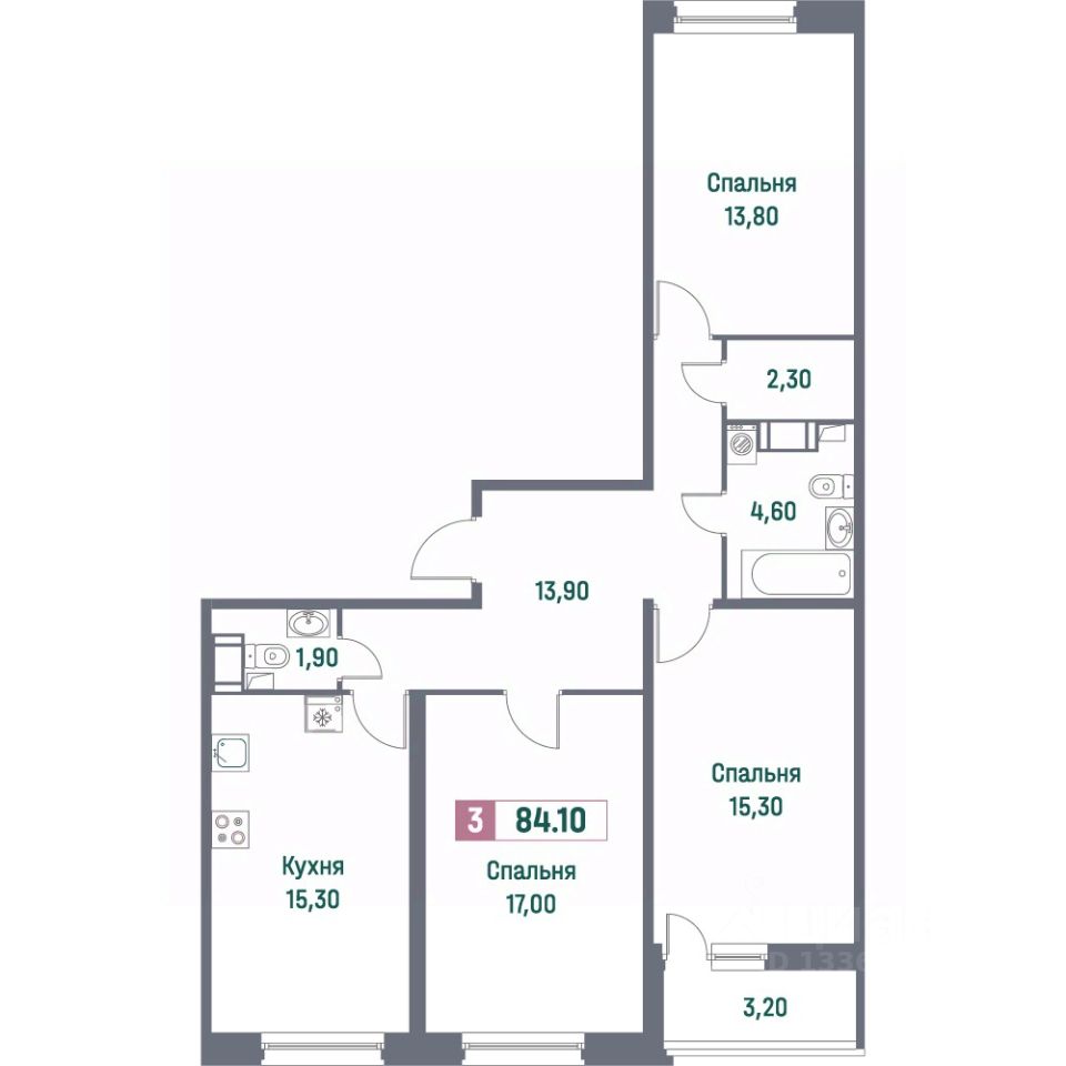 Общая площадь84,1 м²