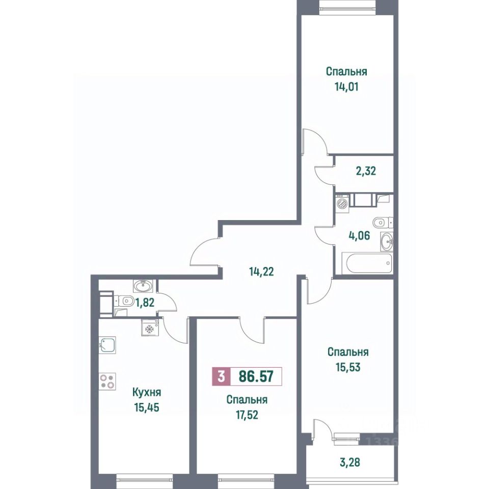 Общая площадь86,57 м²
