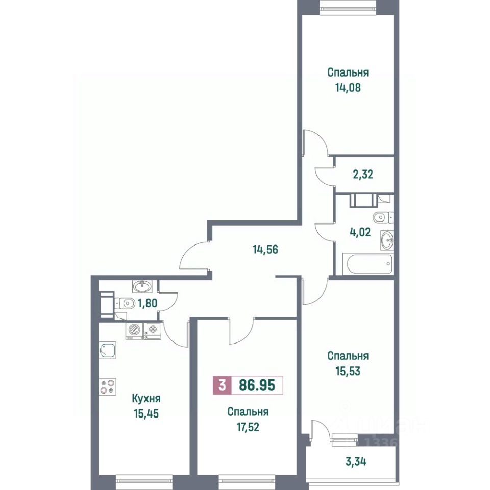 Общая площадь86,95 м²