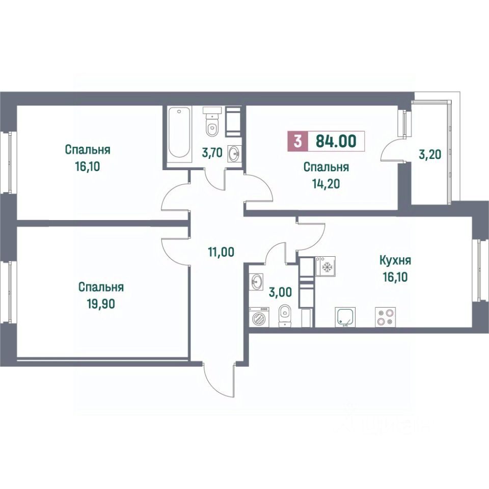 Общая площадь84 м²