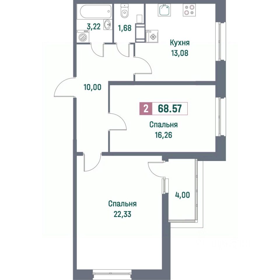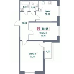 Общая площадь68,57 м²