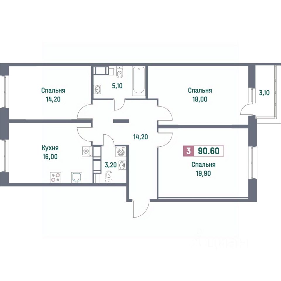 Общая площадь90,6 м²
