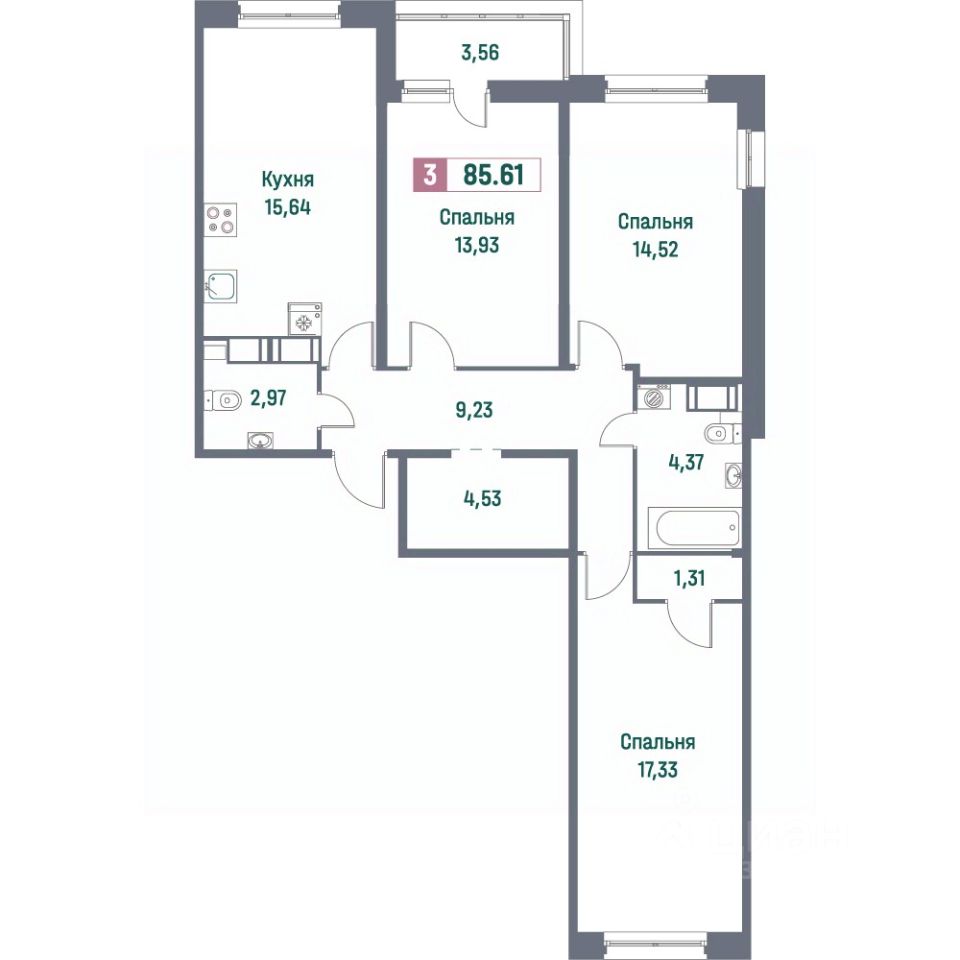 Общая площадь85,61 м²