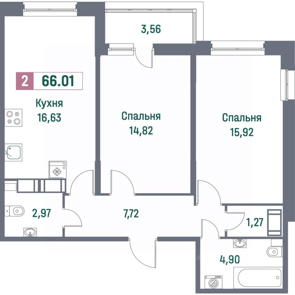 Общая площадь66,01 м²
