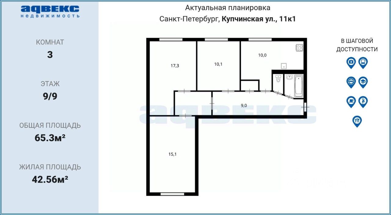 + Развитая социальная инфраструктура, в окружении много парков и зеленых зон для прогулок, в 7 минутах пешком спорт-зал с бассейном.