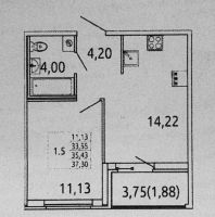Просторная и светлая квартира с кухней-гостиной 14м2 и выходом на лоджию, комнатой 11м2 и санузлом 4м2
