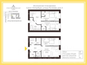 две спальни: 19+14 кв. м.