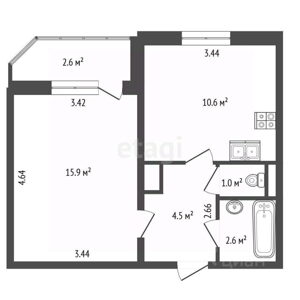 Планировка отличается рациональностью: все помещения правильной формы, просторная комната и квадратная кухня. Раздельный санузел и место для хранения в коридоре повышают функциональность. Застекленный балкон.