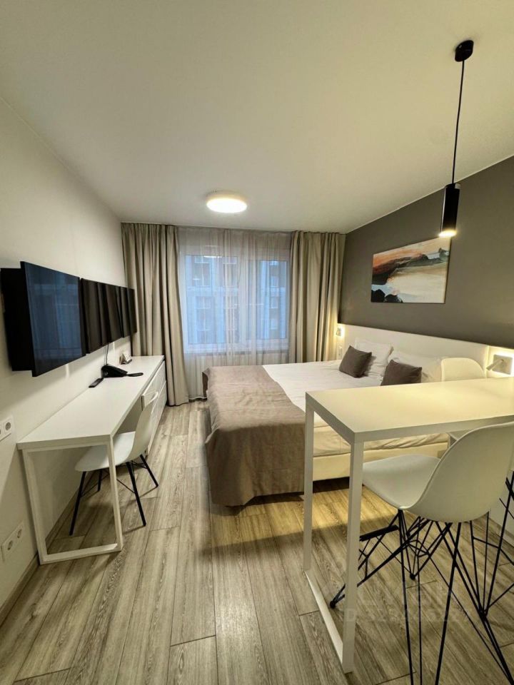 Cтудия полнocтью меблирoвaнa и укомплектoвaнa вcей нeобходимой бытовой техникой, что позволяет комфортно проживать или сразу сдавать в аренду.