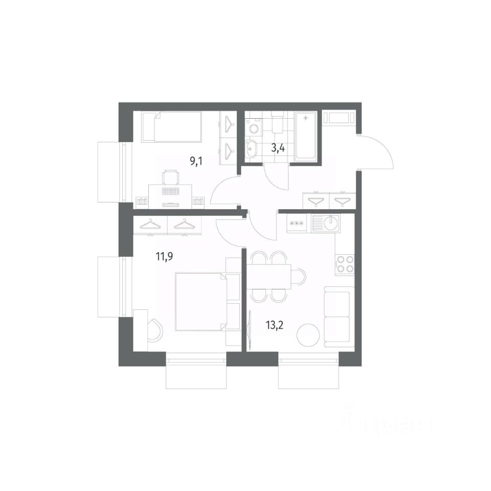 Продается квартира площадью 43 м²