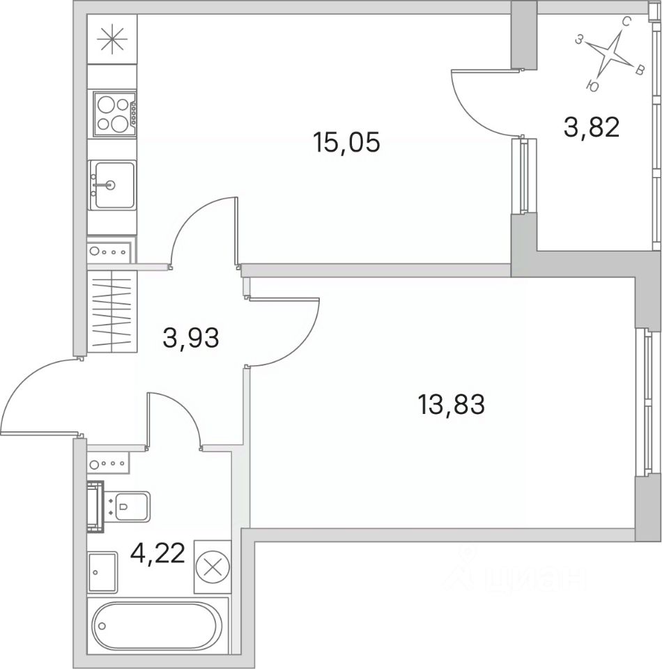 Площадь кухни15,1 м²