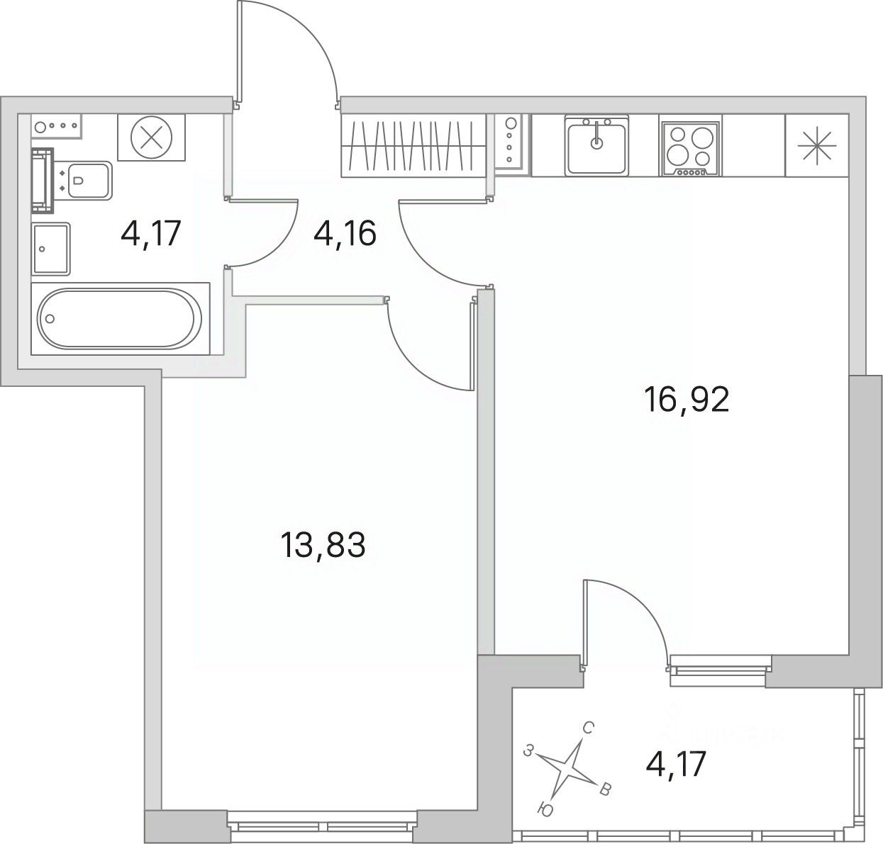 Общая площадь41,17 м²
