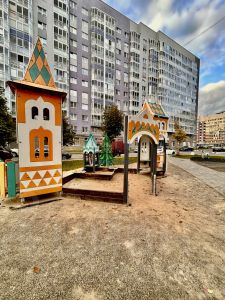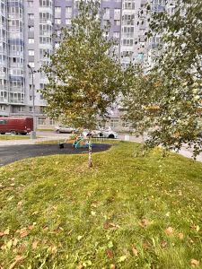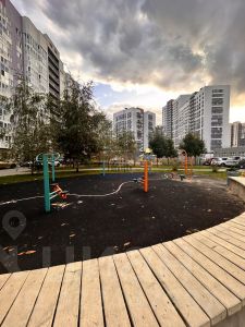 -территория озеленена, дорожки в тротуарной плитке, а внутреннее пространство грамотно зонировано с учетом возрастных групп и интересов жильцов.