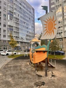 - спортивные и игровые площадки со специальным покрытием из резиновой крошки, а для взрослых — места отдыха с беседками