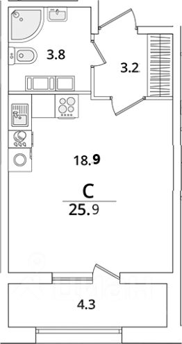 Общая площадь 26 кв.м., Комната правильной формы с выходом на лоджию. Черновая отделка. В паркинг можно спуститься на лифте. Окна на юго-запад.