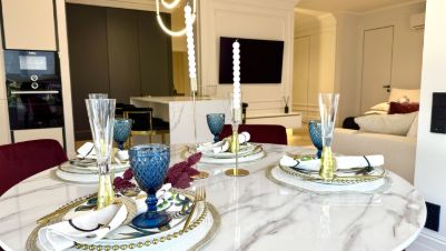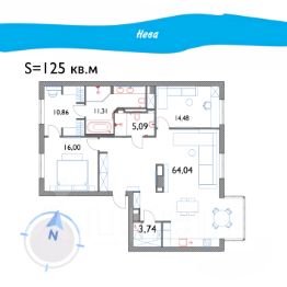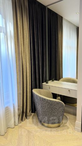 -квартира для тех, кто любит пространства и масштабы: общесемейное пространство с зоной кухни, столовой и отдыха составляет 64 квадратных метра. Мастер спальня-16 кв.м, санузел при мастер спальне-11 кв.м, гардеробная 11 кв.м, 2-ая спальня 15 кв.м, гостевой санузел 5 кв.м и прачечная 4 кв.м