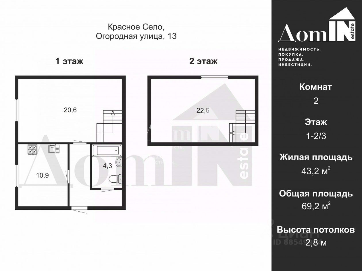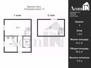 Арт. 118628210 Двухкомнатная двухэтажная квартира в центре Красного Села ждет своего покупателя!