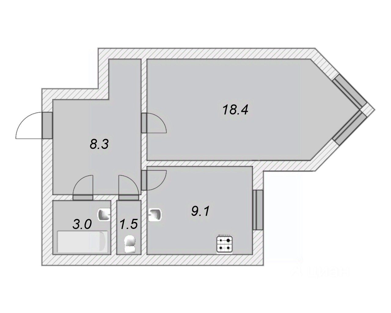 18,4 м²