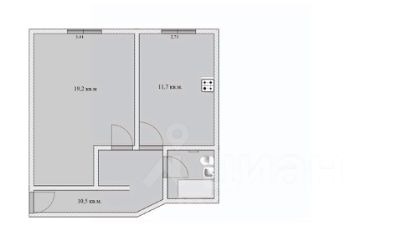 Просторная комната 19,2 кв.м и кухня 11,7 кв.м.