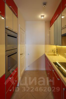 Кухня: Современный гарнитур, стильная бытовая техника (встроенная холодильник, духовка, варочная панель).