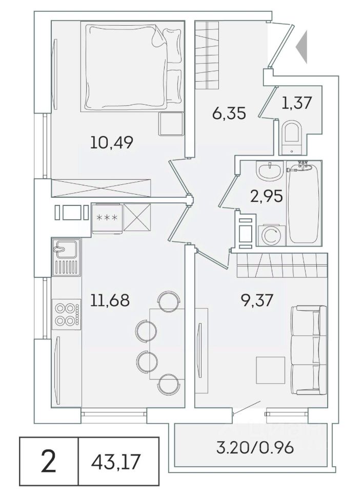 В продаже от застройщика 2 комнатная квартира 42.5 кв. м с черновой отделкой и практичной планировкой для удобной организации пространства. Корпус сдан, идет выдача ключей. Доступен заказ предчистовой отделки white boх, стоимость которой возможно включить в ежемесячный платеж по ипотеке.