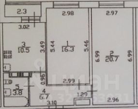 Комнаты раздельные 16.3+20.7 кв метров, кухня 10.5 кв метров.