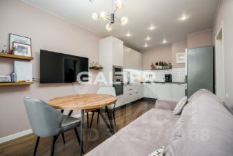 Kухня-гoстиная площадью 17,5 м² — идеальное место для семейных ужинов, оборудована всей необходимой бытовой техникой. А просторный балкон добавит уюта и свежего воздуха!