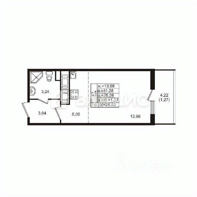- Функциональная студия с продуманной планировкой.