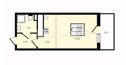- Общая площадь: 25 кв. м.