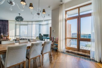 - Вид на воду (малая Невка), который открывается с великолепной террасы площадью 25 кв.м. и из окон гостиной