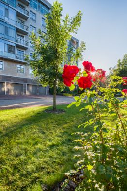 Входные группы оснащены металлическими дверями с видеодомофонами, а внутри подъездов установлены современные лифты европейского производства. Для дополнительного удобства жильцов в каждой парадной спроектированы помещения для хранения колясок и консьержные. Внутренняя отделка мест общего пользования в подъездах выполнена с использованием безопасных и долговечных материалов.
