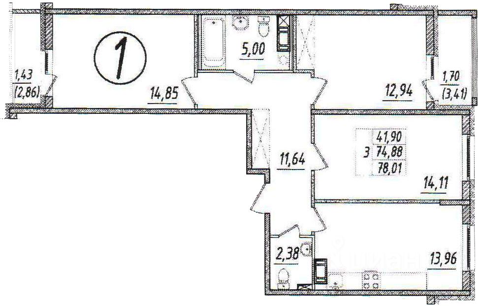Жилая площадь41,4 м²