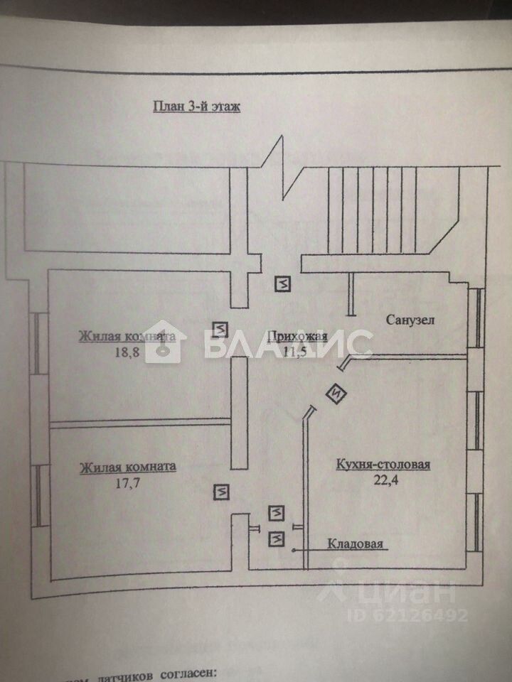 Квартира расположена на третьем этаже шестиэтажного кирпичного дома 1940 года постройки. Высота потолков — три метра, комнаты изолированные, окна выходят на улицу и во двор. Общая площадь квартиры — 81 квадратный метр, жилая — 55,4 квадратных метра, площадь кухни — 22,4 квадратных метра.
