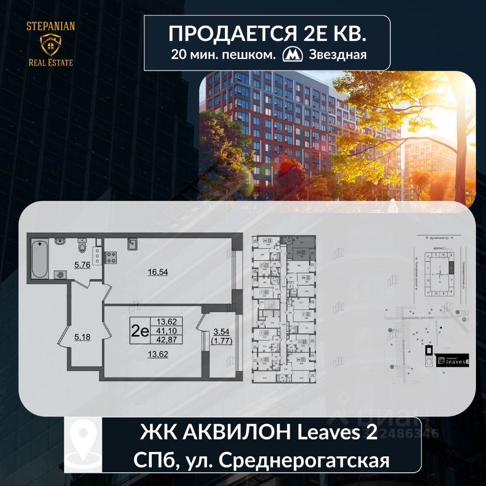 Продается 2евро квартира в 20 мин. пешком Звездная