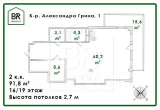Две гардеробные комнаты 8,6 и 3,1 м.2 , большая лоджия, на которой можно расположить кресло качалку или небольшой диван.