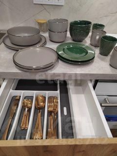 Вся кухонная утварь, посуда и даже постельное бельё.