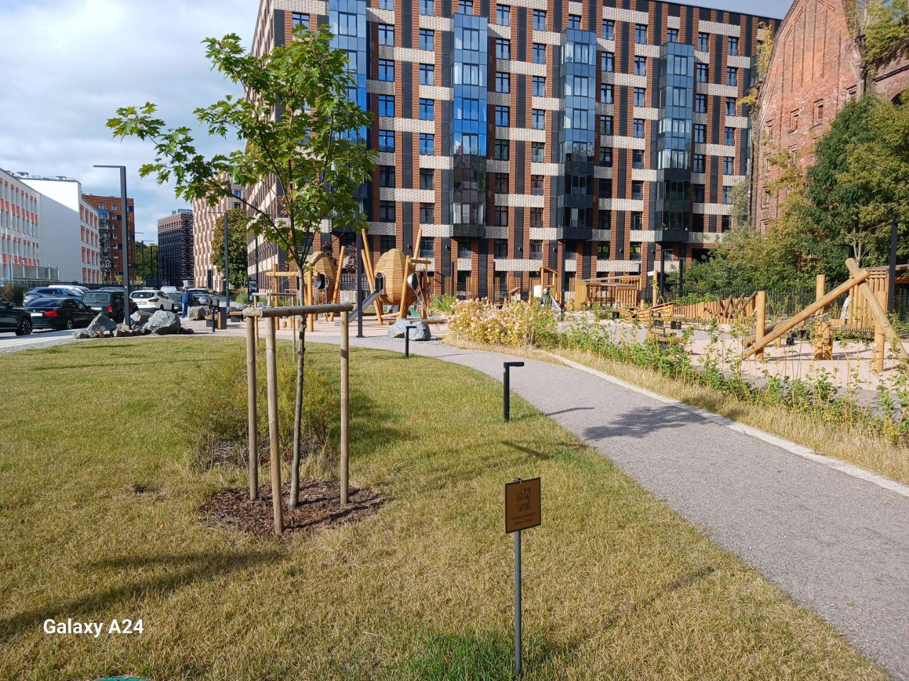 На территории комплекса спроектированы школа, детские площадки и места для отдыха, проводятся работы по озеленению. Территория находится под круглосуточным видеонаблюдением, а входы в дом оснащены IP домофонами для контроля доступа. Для автовладельцев предусмотрен подземный, отапливаемый паркинг . К паркингу можно спустится на лифте.