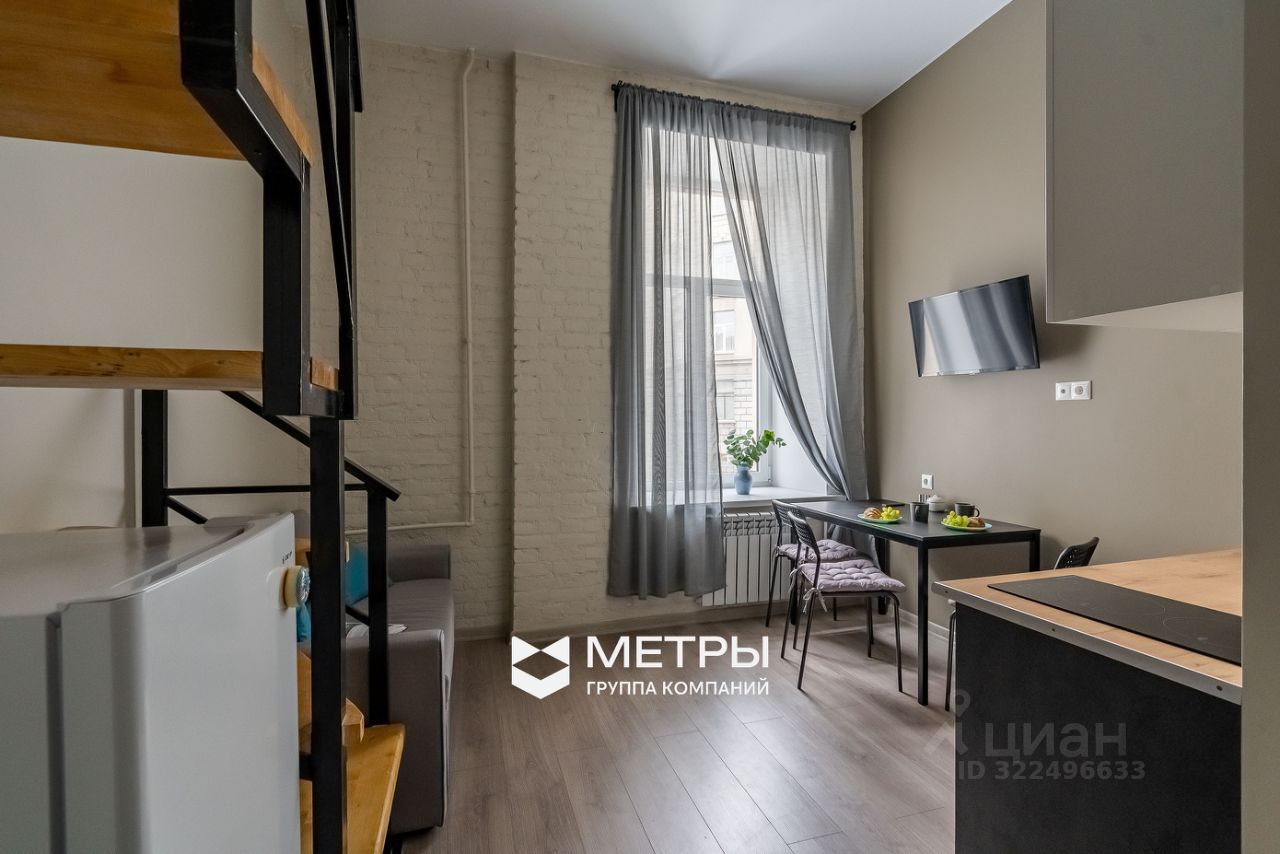Адрес студии: Звенигородская улица, 12/17, площадь 18 м² и высота потолка 3,5 м, кирпичный дом с толстыми стенами