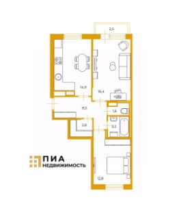 Общая площадь 60,2 кв.м., из них просторная кухня 14,9 кв.м. Без мебели, под ремонт.