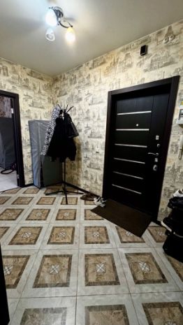 Просторная прихожая, где можно разместить большой шкаф. Установлена хорошая металическая входная дверь.