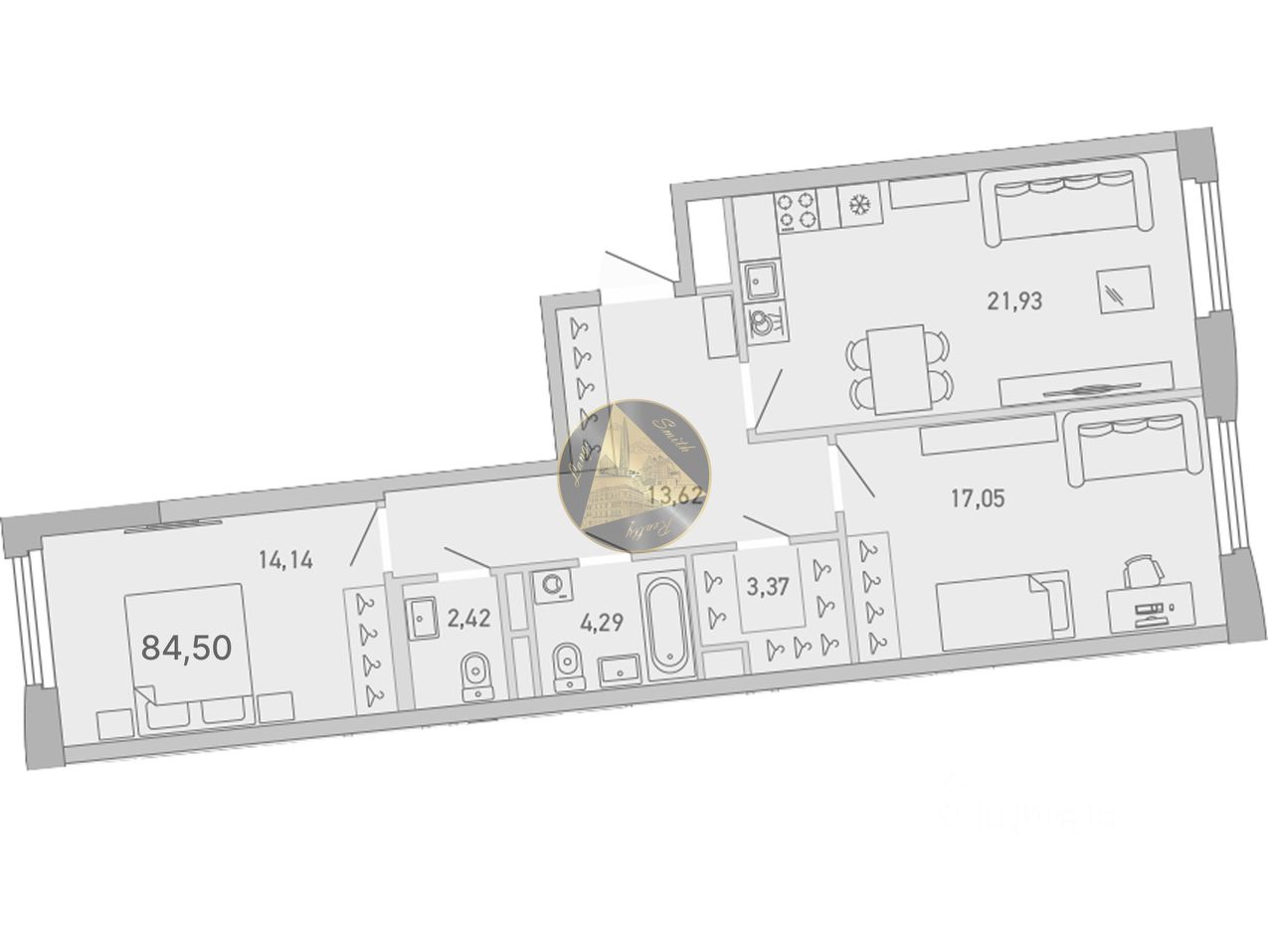Квартира находится на 4/10 этаже. Общая площадь квартиры 84.50 м2.
