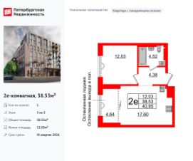Уникальная, функциональная европланировка, большая кухня-гостиная 17.6 м², просторная прихожая 4.38 м². Общая площадь квартиры - 38.53 м², жилая 12.03 м².