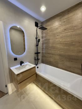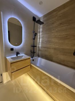 В ванной - ванная 180x80, раковина с тумбой, полотенцесушитель, зеркало с подсветкой, выводы под стиральную машину.