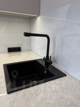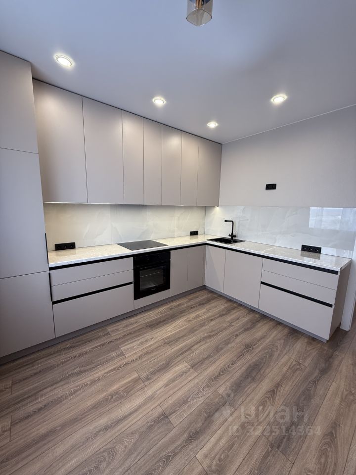 В кухне - встроенная кухня с вытяжкой, индукционной варочной поверхностью, духовым шкафом с конвекцией, посудомоечной машиной и встроенным холодильником. Вся техника новая и на гарантии.