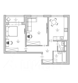 Просторная прихожая 10,2 м, кухня 12,1 м, комнаты 16 м и 15,8 м, санузел раздельный.