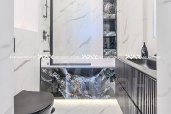 В комнатах мягкие стеновые панели и кровати Walls Studio. Мягкая мебель в гостиной и столовой Estetica. Ванная, подоконники по всей квартире и столешница на кухне выполнены из натурального камня. Люстры Италия хрусталь. Пол инженерная доска, керамогранит. Межкомнатные двери 2,8 метра.