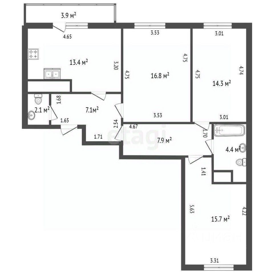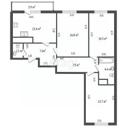 Продается просторная 3-комнатная квартира площадью 81,7 м² на 4 этаже 23-этажного дома.
