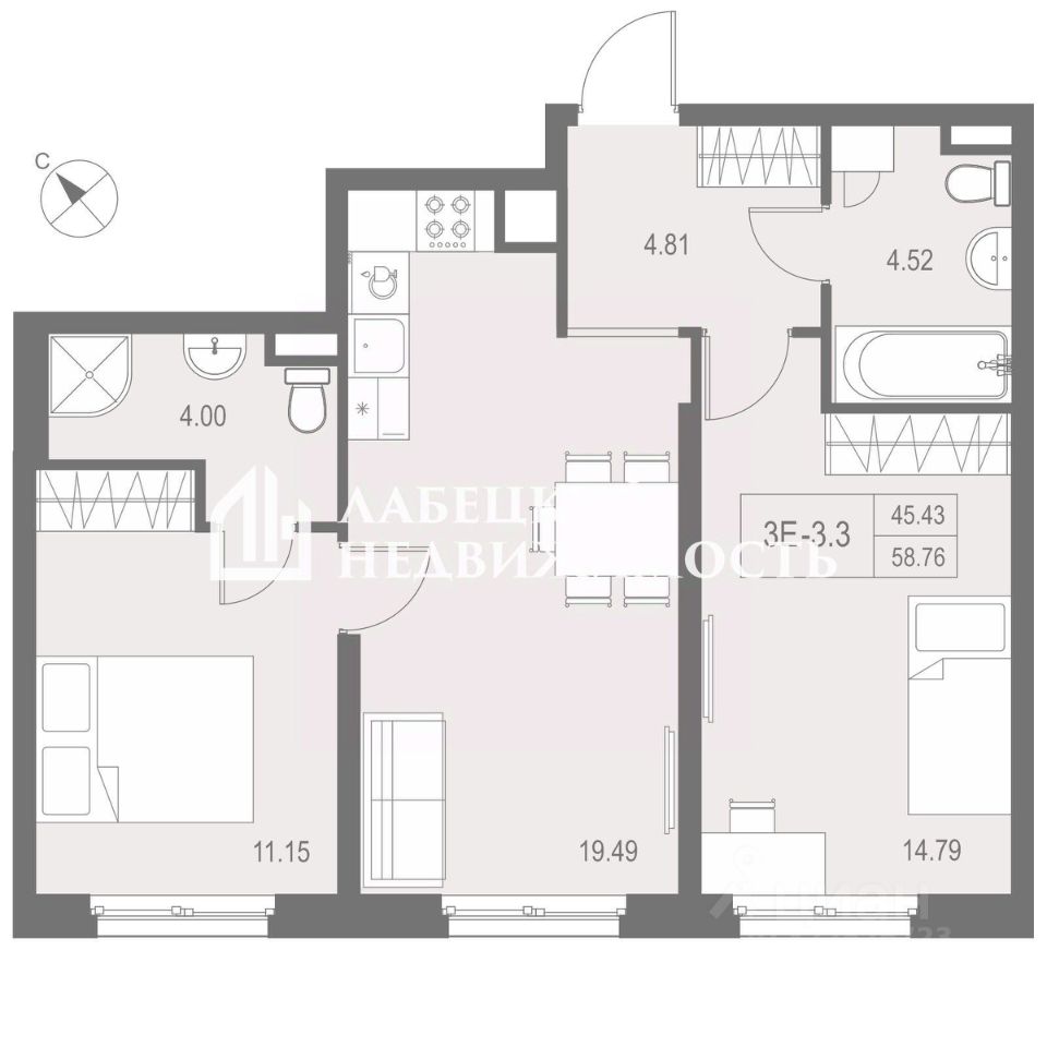 Мастер-спальня , просторная кухня-гостиная , эргономичная спальня, гостевой санузел. Планировка продумана для комфортного проживания или сдачи в аренду.
